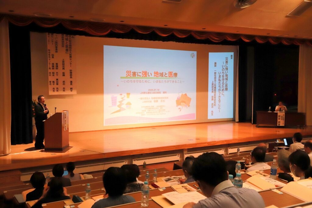 午後には「災害に強い地域と医療」をテーマにシンポジウムが開催され、後藤氏、木下氏に加え、佐久医療センターの田中啓司氏、佐久穂町地域包括支援センターの堀米篤子氏が登壇。地域医療と災害対応の連携について、現場の視点から活発な意見交換が行われました。