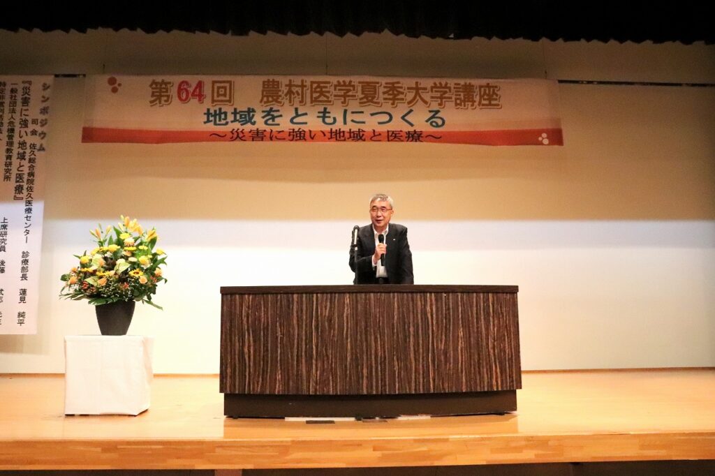 2025年7月18日(金)・19日(土)の2日間にわたり、佐久総合病院農村保健教育ホールにて「第64回農村医学夏季大学講座」が開催されました。メインテーマは昨年に引き続き「地域をともにつくる」、そしてサブテーマには新たに「災害に強い地域と医療」が掲げられ、今年は災害時における医療体制の強化と地域の共助の在り方について、議論を深めました。